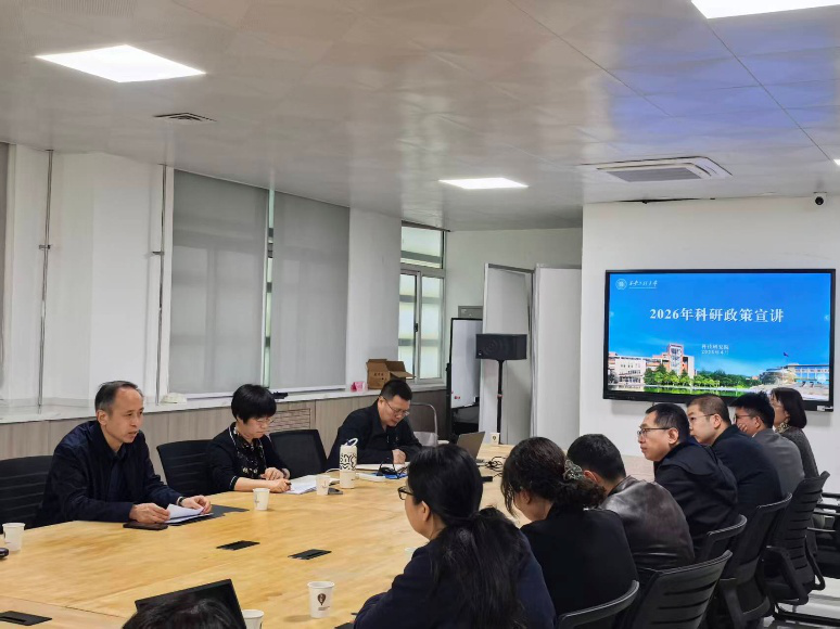 为深化落实国家科研领域改革精神,切实解决教师在项目经费使用中的实际问题,科技研究院张守京副院长、审计处宁涛处长和财务处刘利华老师一行于2026年4月17日莅临明陞m88官方网站(以下简称“明陞m88官方网站”)精准解读最新科研政策,为提升教师科研项目管理水平、加强科研项目统筹规划提供有力支撑。明陞m88官方网站院长房平、副院长杨涛、副院长王丽娟以及各系负责人及骨干教师参加宣讲会。会议由院长房平主持。