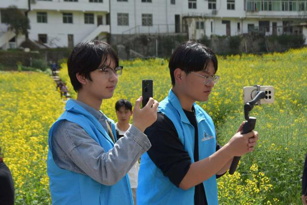 实践期间,团队深入高桥镇一线开展调研采风,先后走访“一树苍鹭”3A级景区、兰草湾花田、关南春茶厂等地,全面采集景区风光、花田景观、制茶工艺及生态风貌等素材,系统梳理当地文旅活动与产业亮点,为后续直播推介工作奠定基础。同时,团队沉浸式体验当地淳朴的民风民俗,深入了解乡村发展的实际需求。