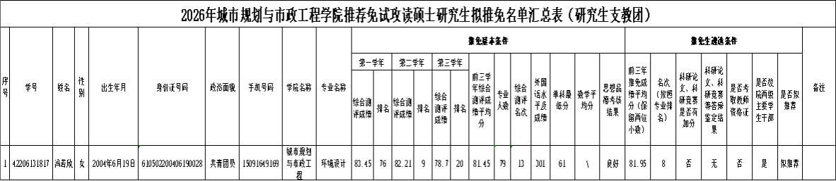 根据学校关于组建第28届研究生支教团推免工作的相关要求及《关于做好我校2026年推荐优秀应届本科毕业生免试攻读硕士学位研究生工作的通知》,学院经前期自愿报名,资格审查等环节,并于2025年9月12日经学院2026年免试研究生推荐领导小组工作会议研究,报学院党委会及党政联席会审议通过,现将明陞m88官方网站拟推荐免试攻读硕士学位、参加第28届中国青年志愿者研究生支教团(2026—2027年度)的学生名单予以公示,公示期内如有异议请电话联系029-81369674或至学院312办公室反馈,公示期3天 (2025年9月12日-2025年9月14日)。