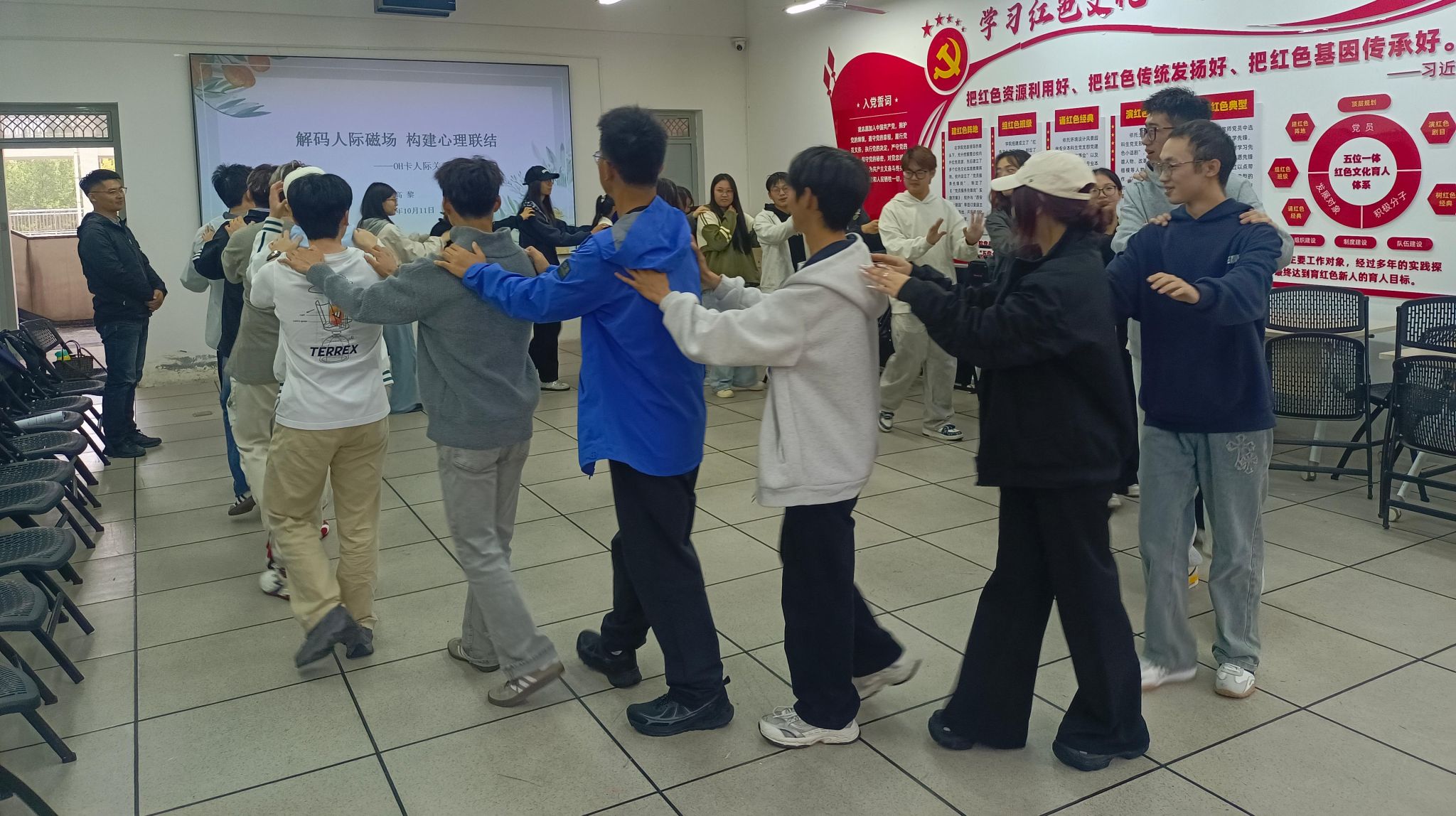 活动伊始,高黎老师通过“三生有幸认识你”“拍拍操”等一系列趣味互动游戏,有效打破了同学们初识的拘谨与隔阂,现场气氛迅速升温。大家在轻松愉快的氛围中相互熟悉,为后续环节的顺利开展奠定了良好基础。