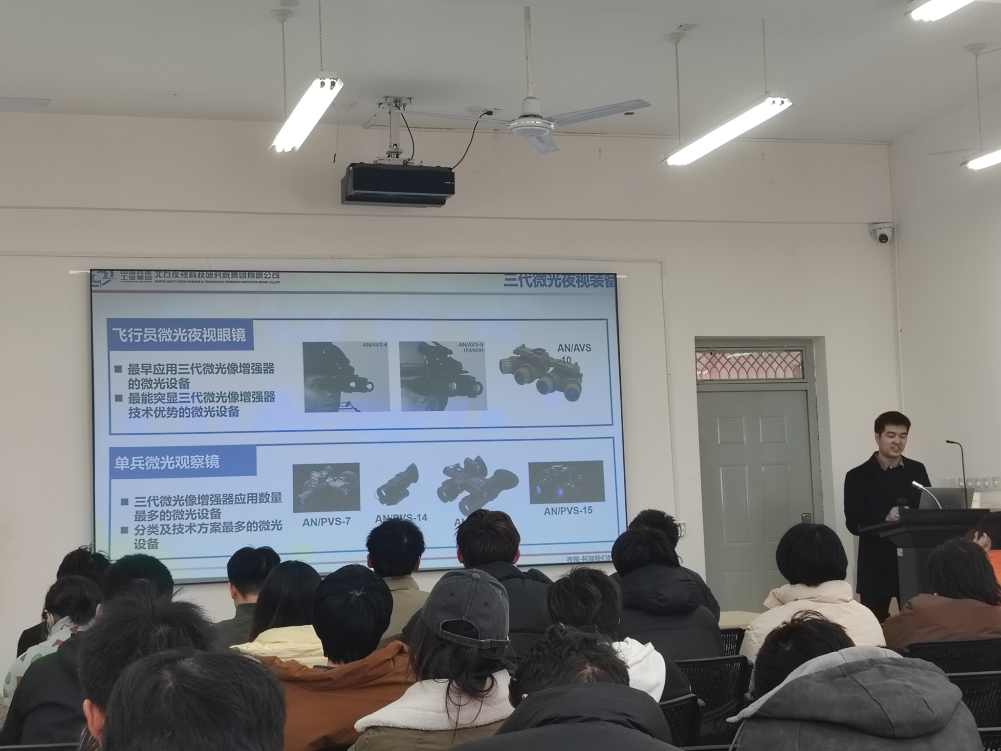 邱洪金博士深耕微光器件技术领域多年,拥有丰富的国家级科研项目实践经验,讲座现场,他从微光夜视技术的概念内涵切入,系统介绍了微弱信号探测技术的基本原理与发展历程,并围绕该领域的整体进展、典型应用场景以及科研项目从立项论证到落地实施的科研实践经验,助力在场师生构建起对领域的系统认知。